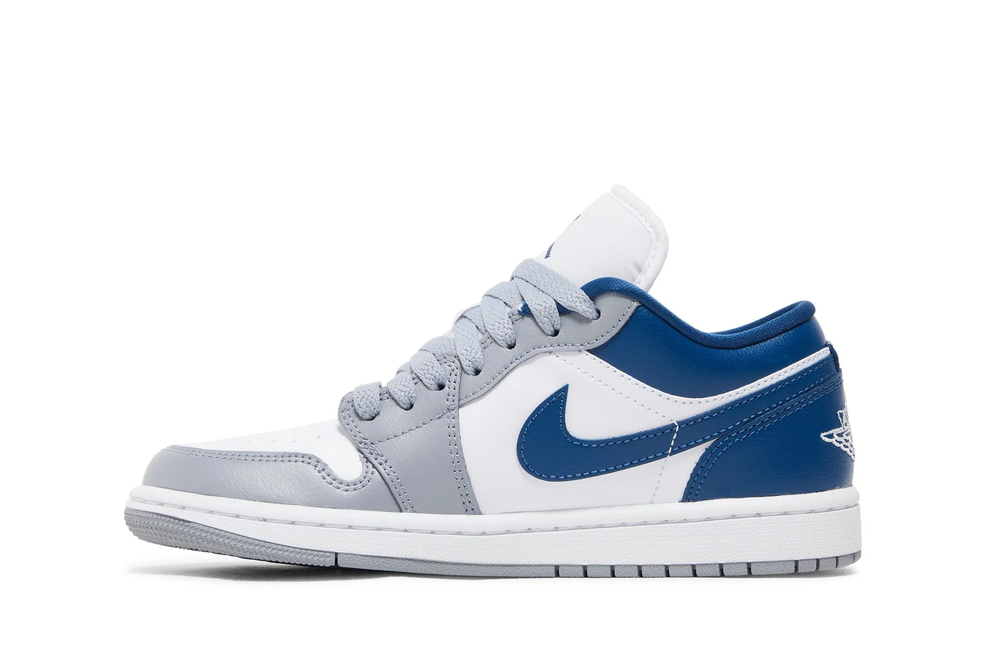 Step up your shoe game with the iconic Air Jordan 1 Low ‘French Blue’! This classic low-top sneaker features a white leather upper with contrasting blue and gray overlays and is finished off with an embroidered Wings logo on the heel. The snug fit provides comfort and support, while the encapsulated Air Sole cushioning in the heel ensures maximum shock absorption. With its timeless style, this shoe will never go out of fashion and will have you looking fresh all year long.