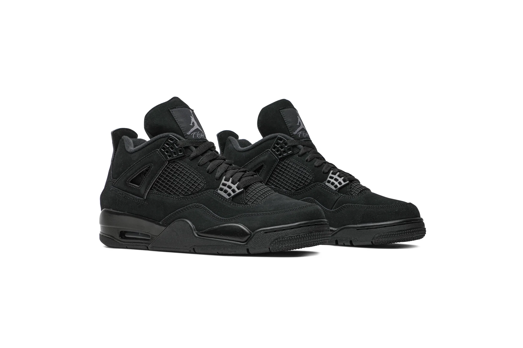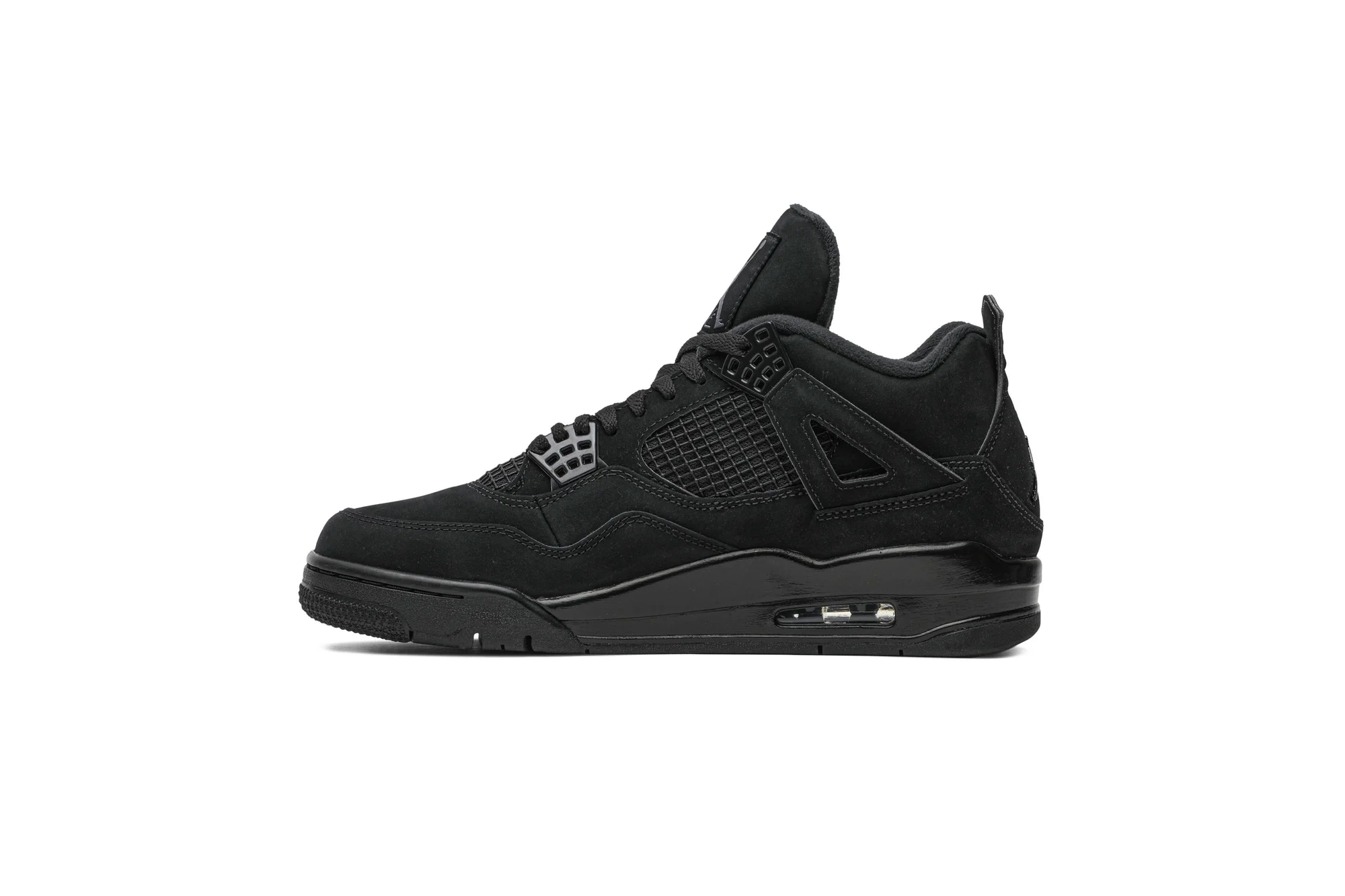 Drawing insipiration from MJ’s nickname “the Black Cat”, this revamp of the Nike Air Jordan 4 features a stealthy all-black look. Details include mesh underlays, signature wing eyelets and the Jumpman logo in Light Graphite.
